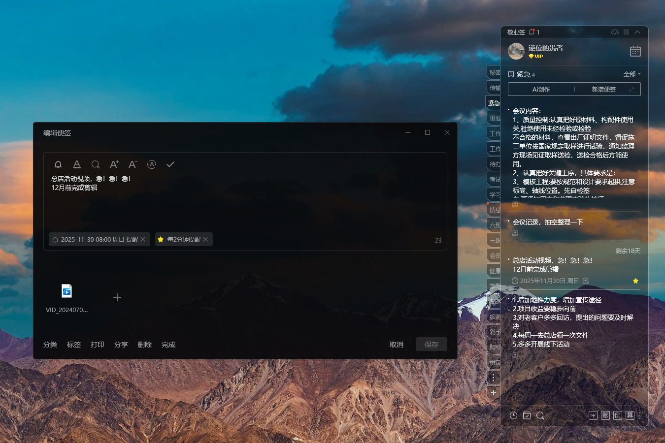 敬业签是一款用起来比较舒服的待办事项管理软件。它的界面简洁直观,操作方便,用户可以轻松上手,无需复杂的学习过程。支持在安卓、iOS、Windows 等多个系统上使用,并实现多端同步,方便在不同设备间查看和管理待办事项。它还具备分类管理功能,用户可以按项目、日期等创建分类,对待办事项进行系统整理。提醒功能丰富,能设置单次提醒、重复提醒等多种提醒方式,确保您按时完成任务。同时,支持文字、图片、语音多种形式的记录,满足不同场景下的记录需求。