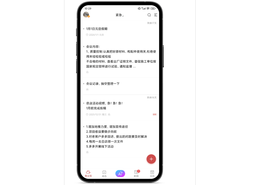 在手机上下载并打开敬业签App,登录账号进入主界面后,可添加一条每天打卡的便签或待办事项,并通过自定义提醒功能,设置首次提醒打卡的日期,及时分,设置后还可开启每天提醒,设置每天早上和晚上提醒自己按时打卡;如果遇到休息日或节假日不用上班,还能设置提醒免打扰。
