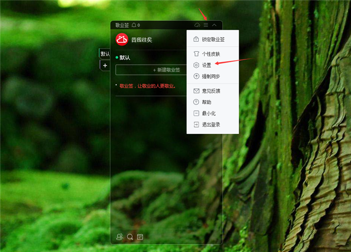 二、在云便签右上方找到“设置”,在弹出的选择框中点击“设置”按钮,进入系统设置页面;