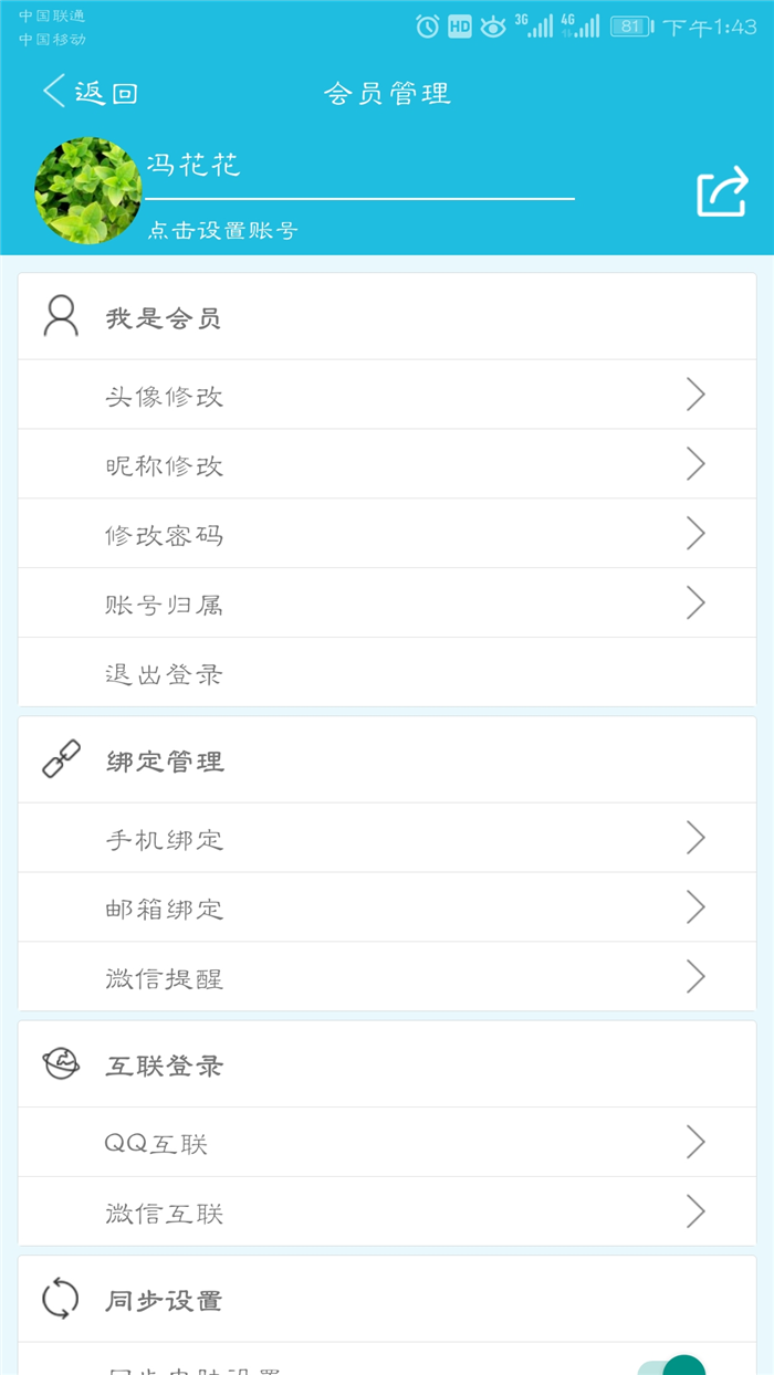 二、点击左上角的头像图标,快速进入到会员管理界面并找到“互联登录”的选项;