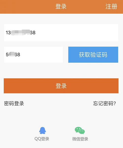 一、打开苹果手机敬业签进入登录界面,在登录的下面左侧有一个验证码登录,切换验证码登录。