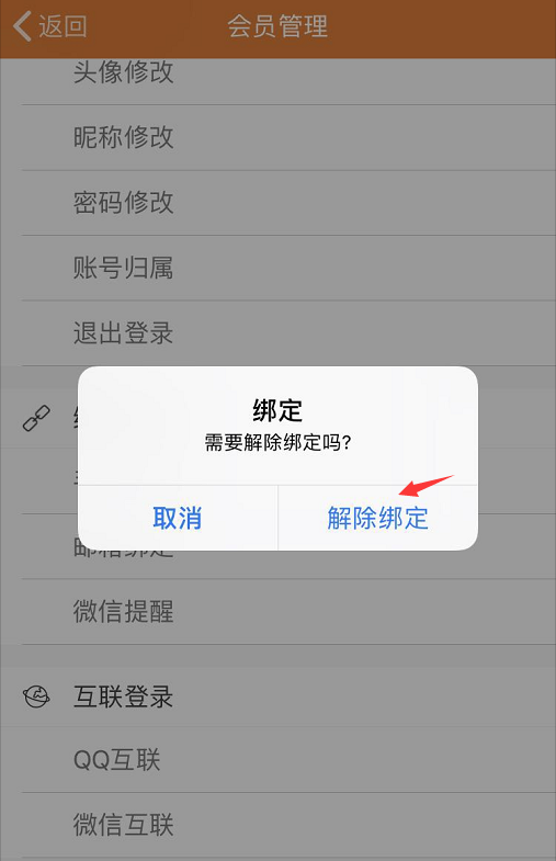 一、使用手机号码登录苹果版敬业签后,找到会员管理——绑定管理——手机绑定,点击手机绑定时,会弹出一个解除绑定的提示框。