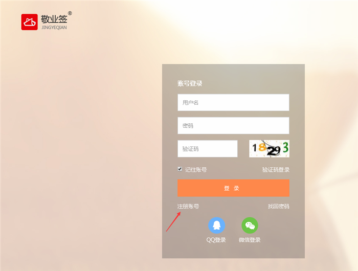 一、打开敬业签Web网页版登录界面(https://web.jingyeqian.com/home/login/),点击“注册账号”按钮,打开进入敬业签账号注册界面;