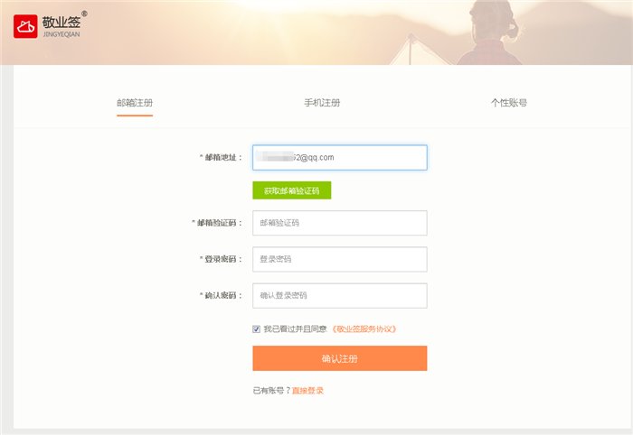 敬业签的注册方式可以分为邮箱注册、手机注册和个性账号三种。准备使用邮箱注册敬业签账号的用户,可以按照如下步骤完成操作,使用邮箱账号注册敬业签会员账号,登录敬业签网页版个人便签主页面进行编辑记事。