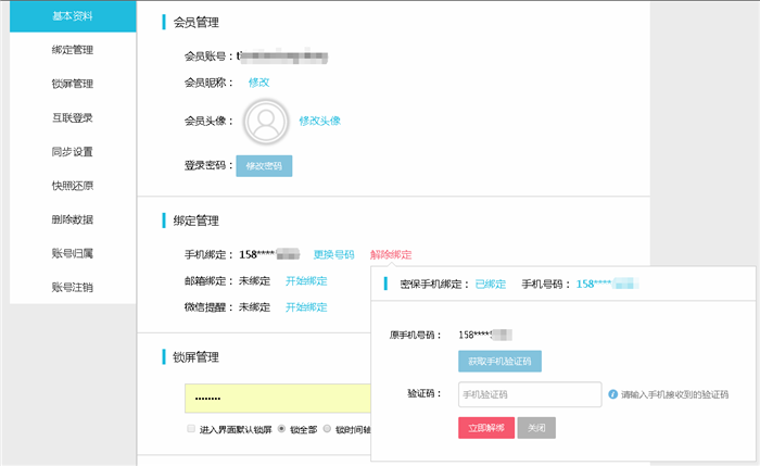 五、点击立即解绑后,将会自动返回会员管理界面,手机绑定状态变成未绑定,即代表已成功解绑邮箱。