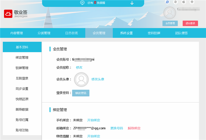 四、确认无误后点击提交,即可自动返回会员管理界面,会员账号自动更新,即代表该邮箱登录的账号已成功注册绑定个性账号。