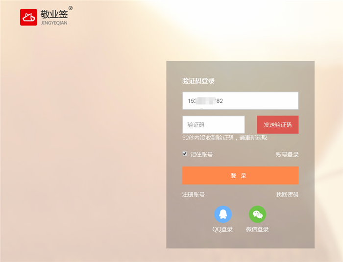 三、点击“登录”按钮,即可成功使用手机短信验证码登录敬业签账号。
