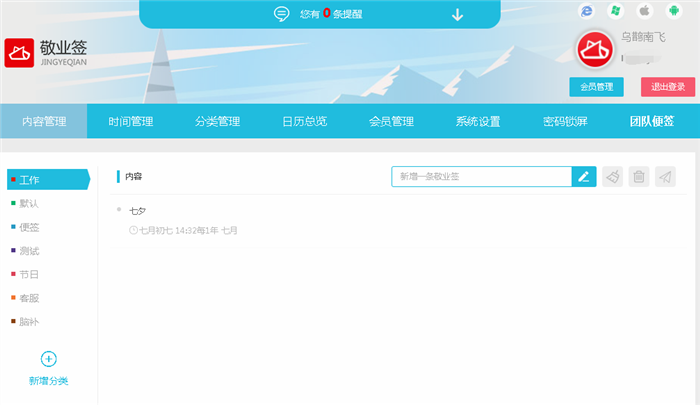 一、打开敬业签Web网页版登录界面,输入敬业签账号或密码,或者使用验证码登录以及微信QQ互联快捷登录等方式,登录进入敬业签Web网页版个人便签中心;