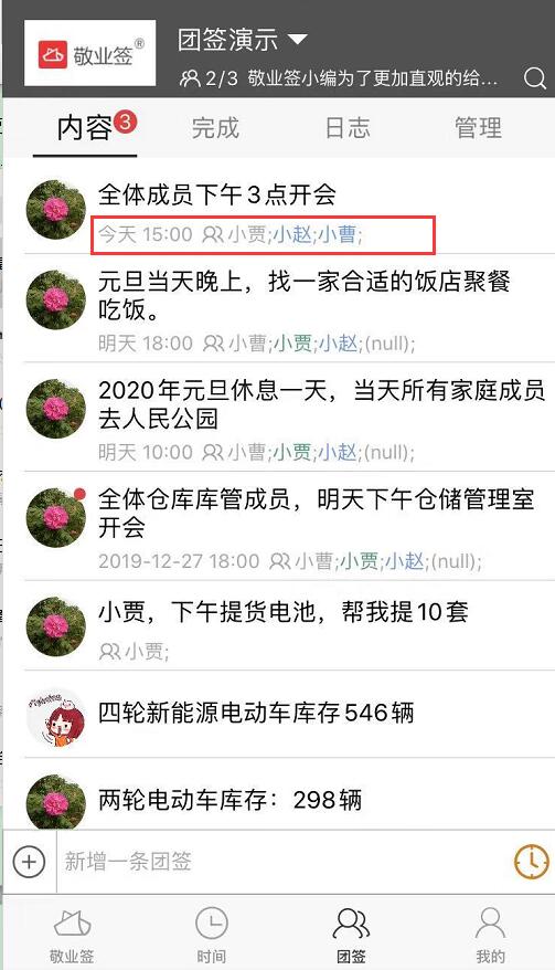 除了手机电脑共享记事内容以外,敬业签团队便签上记录的工作计划还可指派团队成员来完成,指派下去的任务,在手机端可通过指派任务下方团队成员名称的颜色判断任务完成情况(团队成员名称呈绿色表示已完成任务,名称呈灰色表示已查看并未完成,名称呈蓝色表示未查看);在Windows电脑端也可点击被指派任务下方的成员详情查看团队成员任务的完成情况,以此来实时跟踪分配下去的任务完成情况。