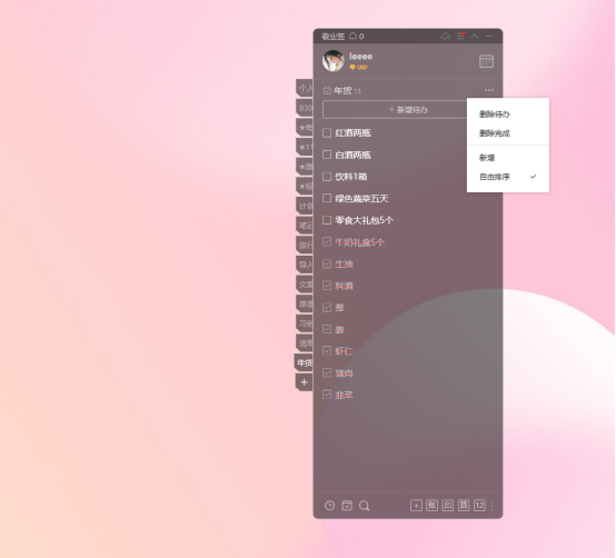 除此之外,敬业签还支持批量删除待办或完成内容,这让我在整理年货清单时更加便捷。