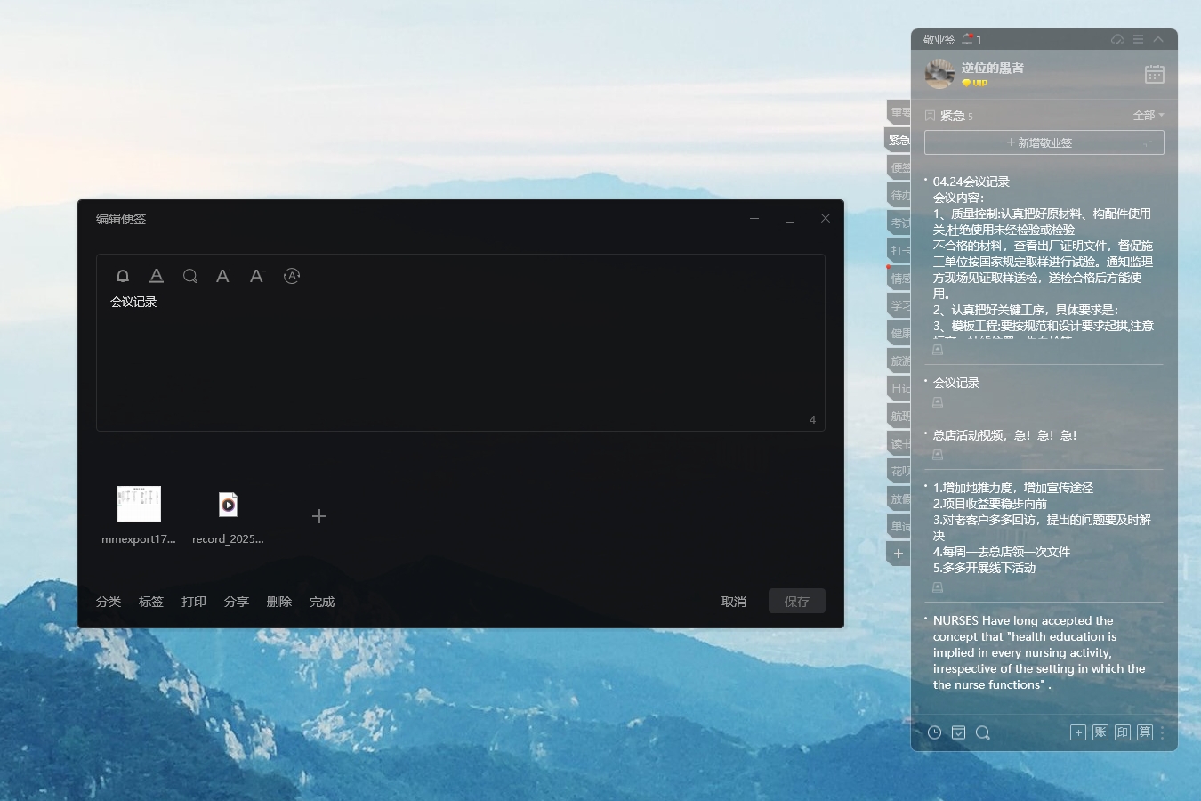 你是否曾因为工作文件分散在微信、邮箱、云盘等各个地方而头疼?这样不仅查找起来费时费力,还经常容易弄丢关键资料。如果你需要一款既能记录文字备忘,又能存储多种格式附件的便签工具,敬业签的“附件库+云存储”功能将彻底改变你的文件管理方式。