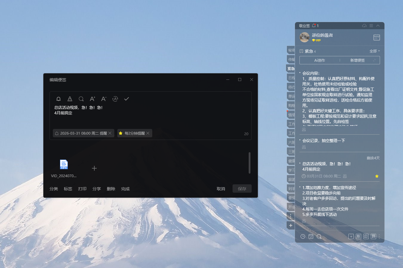 在电脑前工作时经常会遇到这样的困扰:明明在备忘录里记下了重要事项,却因为忘记查看而错过了截止日期。其实解决这个问题的好方法就是设个提醒,但提醒软件与备忘录的割裂让提醒的效果大打折扣。这时就需要敬业签出场了,它会将这两种功能合二为一,成为你更加实用的选择。