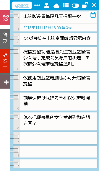 在日常工作和生活中,我们常常需要处理各种带DDL的工作,这些工作如果仅靠人脑记忆难免会有疏忽遗漏。因此有没有一款在办公过程中就能发送提醒的优秀工具呢?有的,它就是敬业签,这款完美融入Windows系统环境的提醒便签,让提醒变得简单而高效。