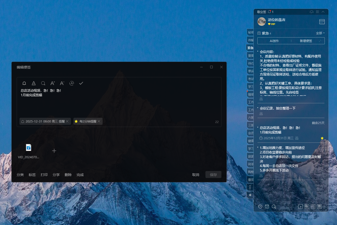 对于需要处理海量信息和复杂日程的现代人而言,桌面便签软件已成为生产力工具箱的标配。然而市面上的便签app普遍陷入:功能强大但却操作复杂,追求简便却又要牺牲功能的怪圈之中。如果你想要两者皆得,那敬业签将是你的优质选择,这款好用便签,将成为你电脑桌面上的优选之选。